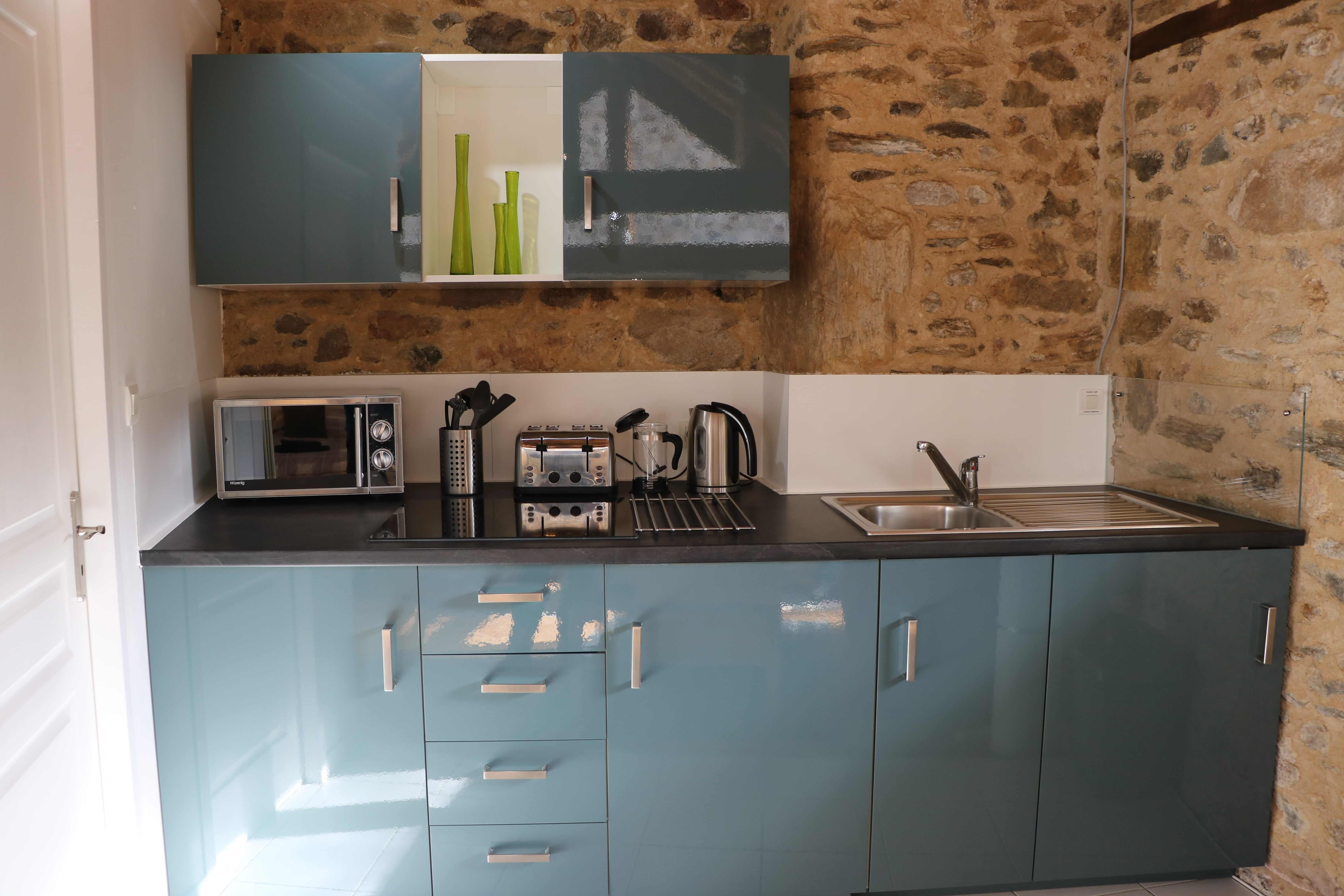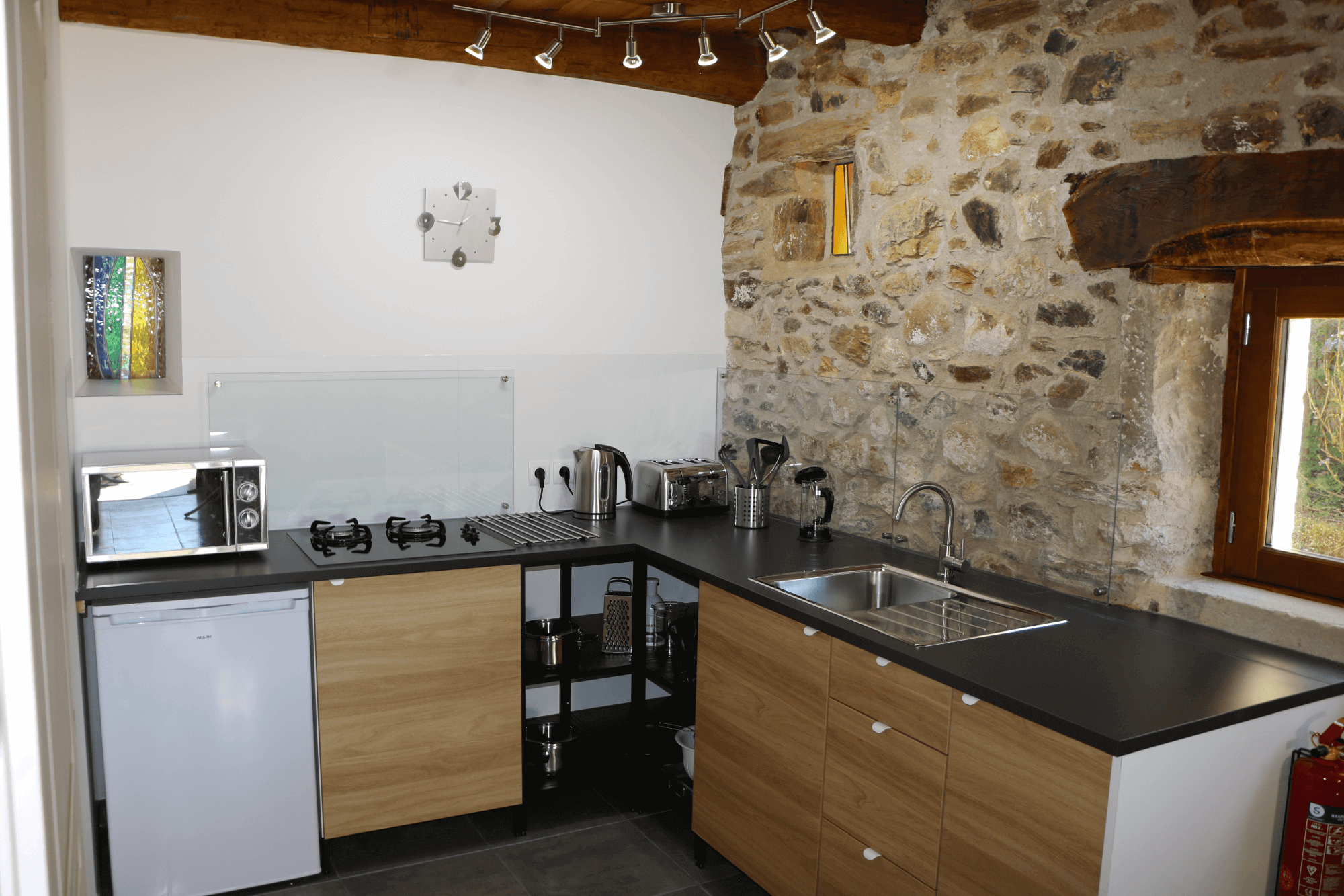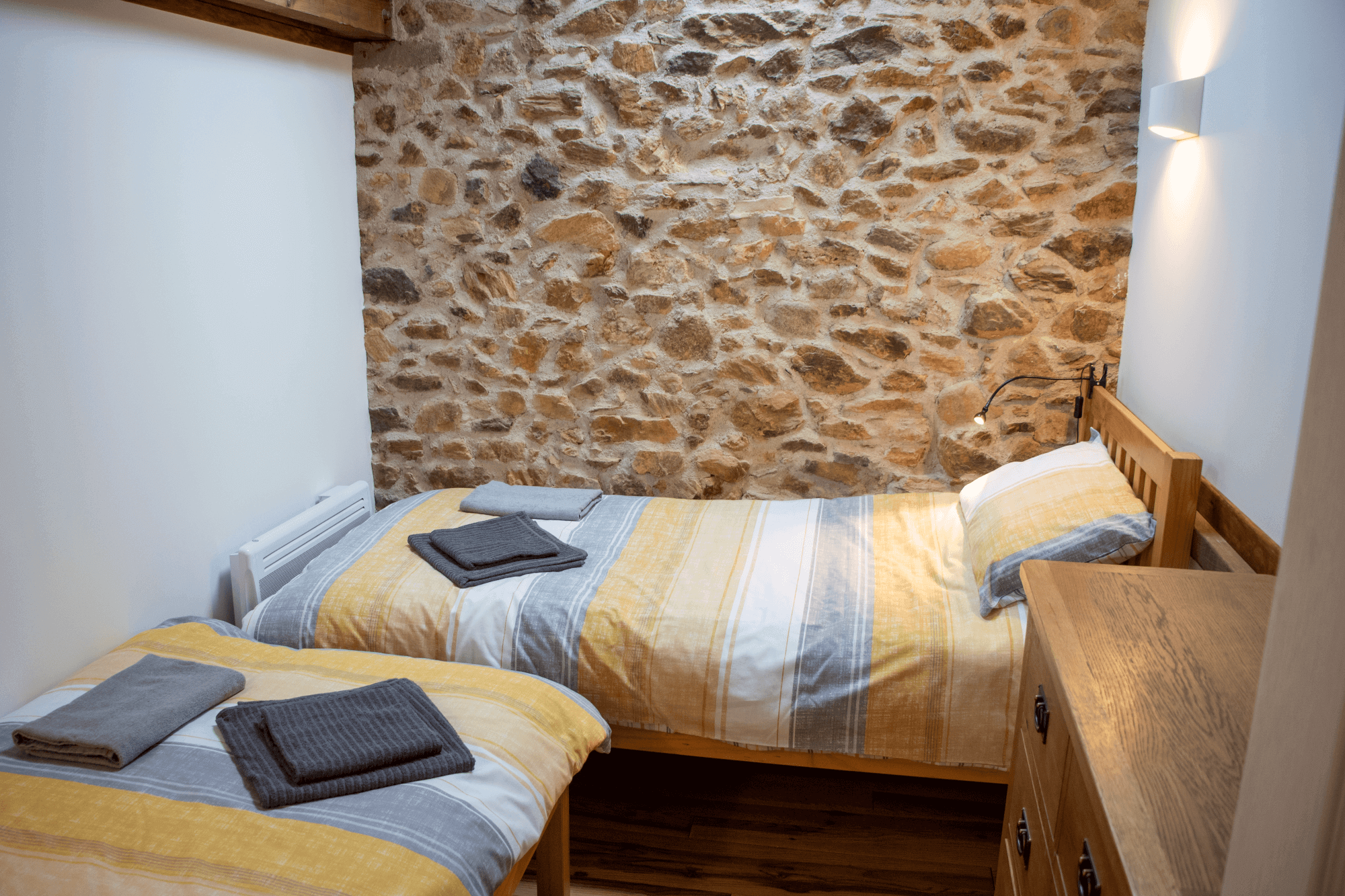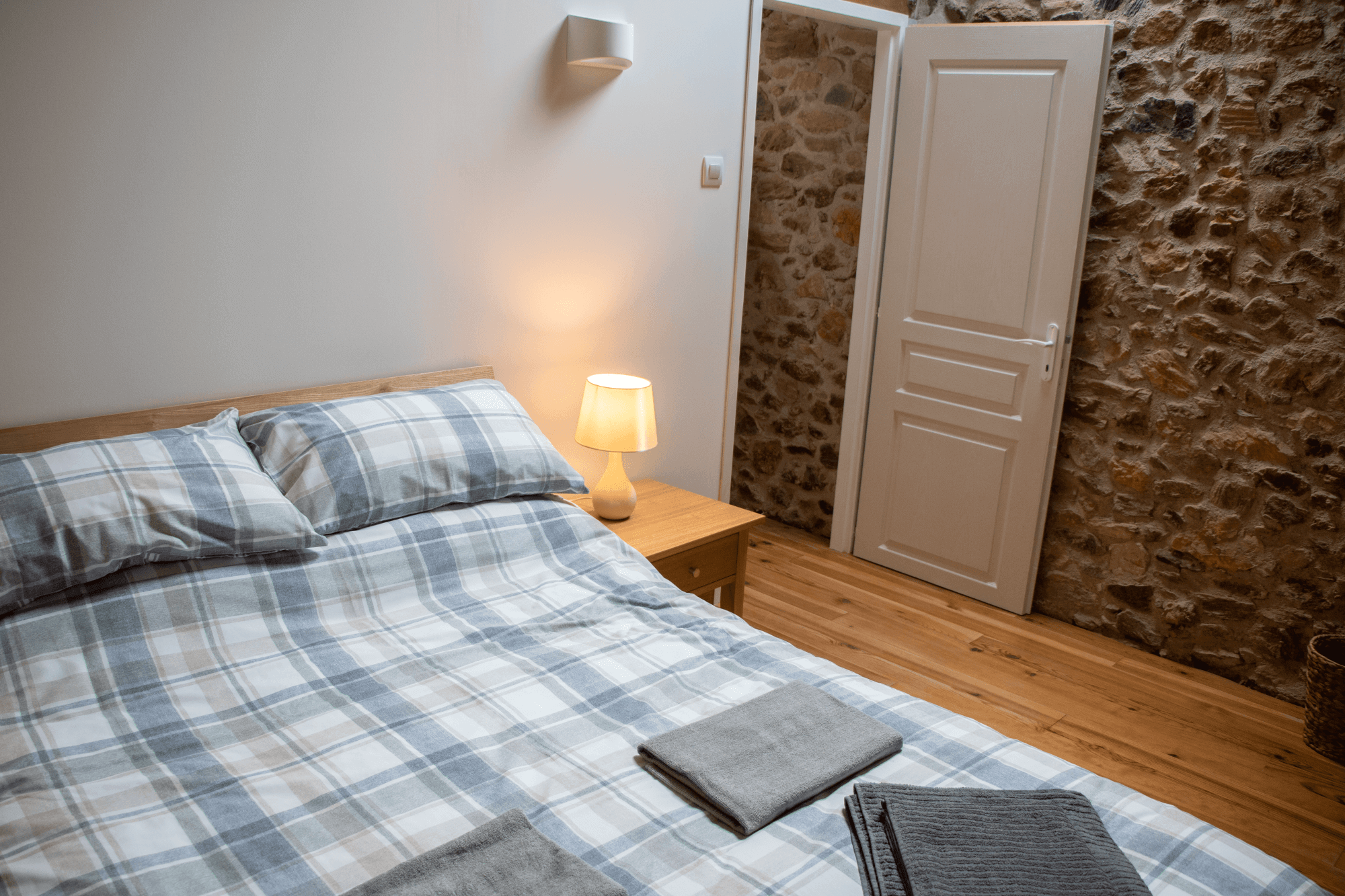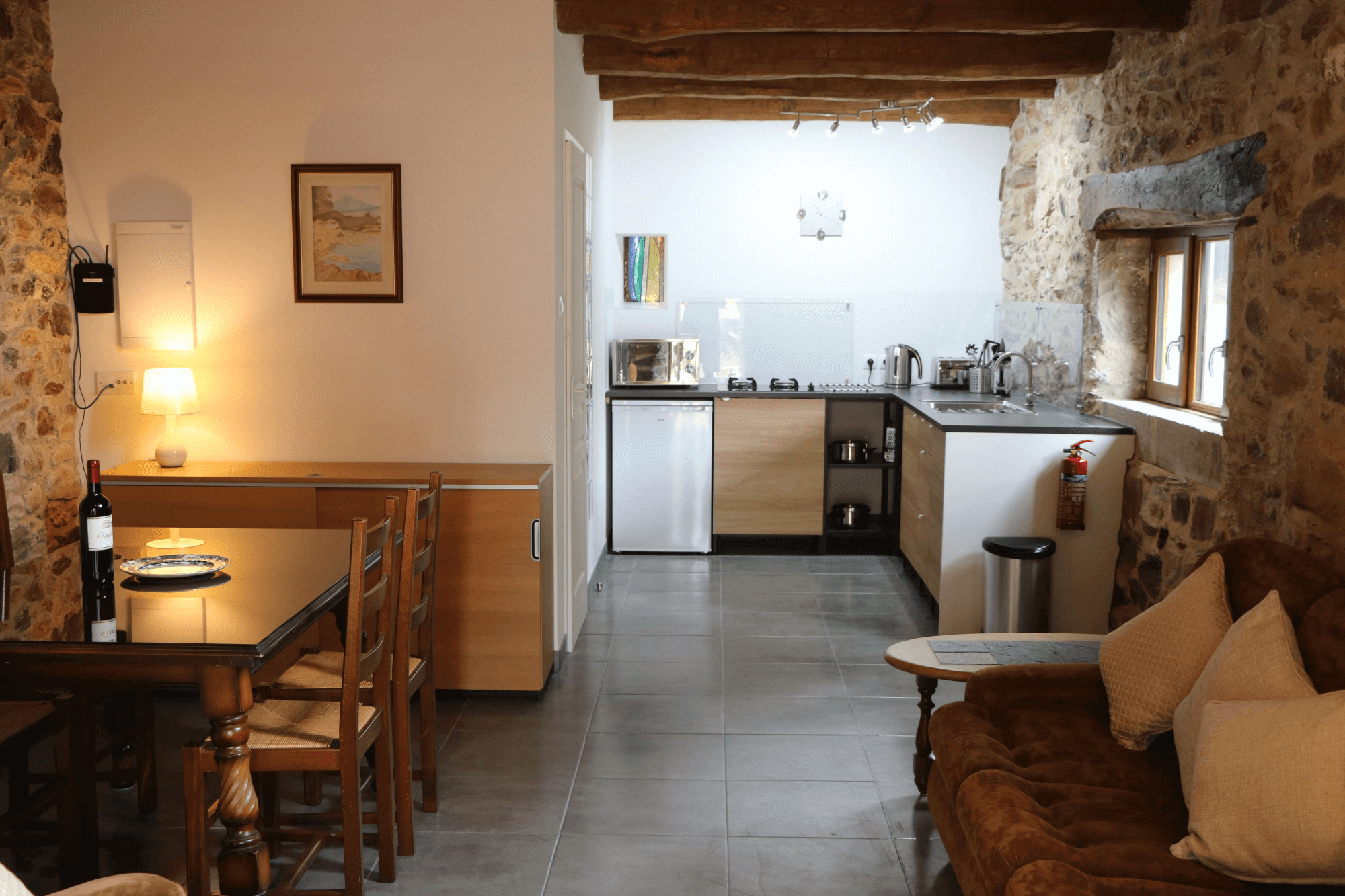 Maisons traditionnelles en pierre, avec cuisine ouverte sur salon/salle à manger, et terrasse dégagée donnant sur le jardin et la piscine. Nos gîtes indépendants offrent tout ce dont vous avez besoin pour votre séjour : des chambres doubles et/ou à deux lits, une kitchenette et un salon / salle à manger.